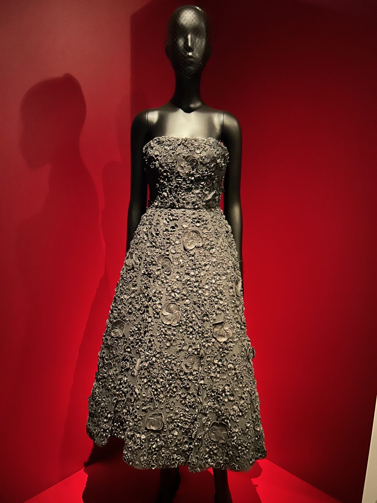 Qui si possono ammirare da vicino (ma non troppo… perchè protetti da un sensore che si illumina e suona se superate la distanza di sicurezza) le straordinarie creazioni della moda firmata Dior (ben 130 abiti e 30 toiles) le silhouette ad A, le gonne a corolla, il completo tailleur Bar e via via le collezioni più recenti, indossate da star del cinema, personaggi politici e del jet set.