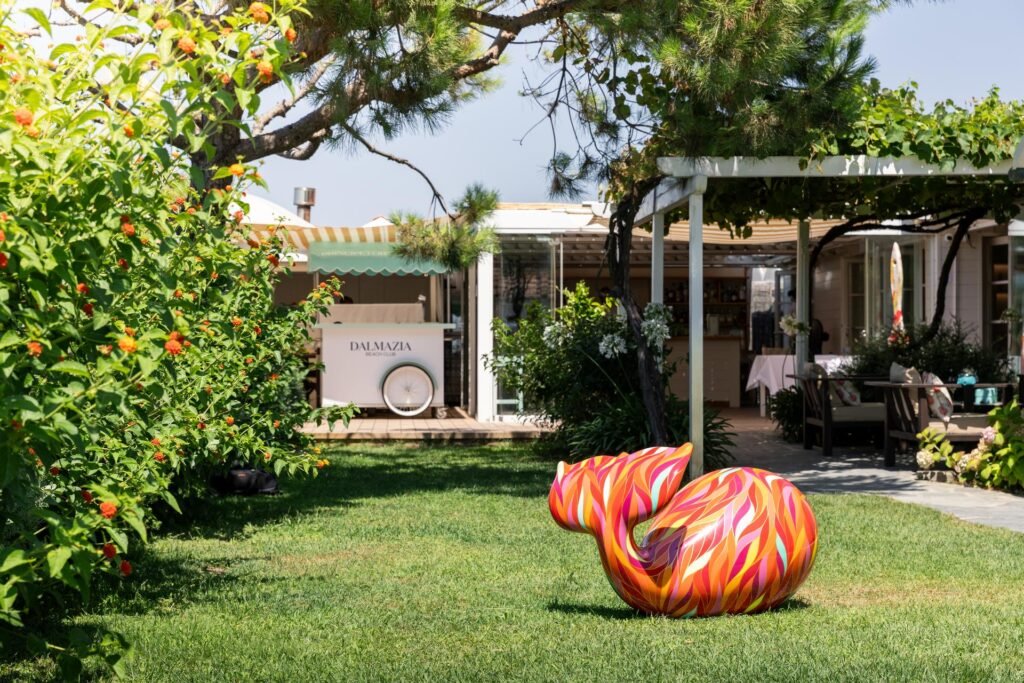 Il Bagno Dalmazia si conferma così non solo un elegante stabilimento balneare, ma anche un luogo dove l’arte incontra la natura. Grazie alla curatela di Deodato Arte, le installazioni trasformano il litorale in un palcoscenico creativo, capace di emozionare e sorprendere.