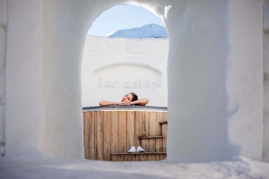 Nel “piccolo Tibet” delle Alpi, l’Hotel Lac Salin inaugura una spa all’aperto interamente scolpita nella neve per un relax sostenibile.