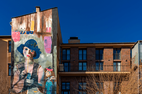 Il quartiere, dopo essere stato segnato dalla Seconda Guerra Mondiale, ha invitato artisti da tutto il mondo a trasformare edifici rovinati con murales contemporanei, dando così nuova energia e creatività al circondario.