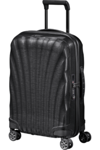 C-Lite Samsonite colore nero. Bagaglio a mano 55 cm Realizzata in CurvTM (polipropilene intrecciato ) con doppie ruote e traino bitubo, è leggera ed estremamente resistente agli impatti grazie al suo design shock-absorbing. Questa valigia made in Europe assicura una esperienza di viaggio impareggiabile. Disponibile anche in chili red, metallica green, midnight blue.
