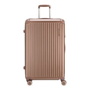 Tinny go by Carpisa bagaglio a mano taglia S è la scelta perfetta per chi cerca un look sofisticato unito a materiali ecosostenibili. Realizzato in ABS + PC film proveniente da riciclo, con fodera interna in 100% R-PET, riflette la filosofia Green Oriented di Carpisa. La finitura metallizzata, ottenuta grazie a mescole speciali e additivi di ultima generazione, dona alla superficie un effetto simil alluminio elegante e contemporaneo. Dotato di ruote removibili super silent con profilo effetto metallo, lucchetto TSA integrato, zip YKK con cursore self-repairing e ganci laterali multifunzione. Il trolley system presente sulla taglia S è multi-step con diversi fori per poter essere regolato in più step in base all’esigenze. Colori: bronzo e argento.
