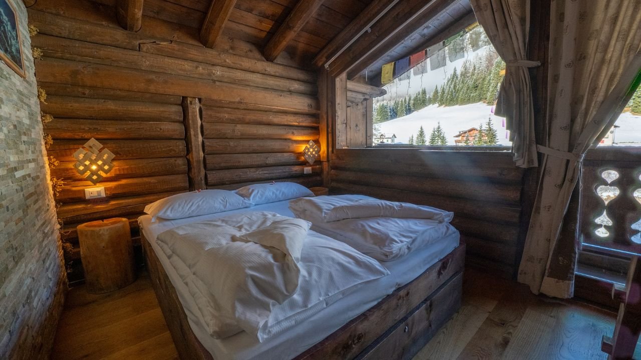 Il cuore della struttura è l’edificio centrale che ospita la reception e l’Alp Stube, luogo di incontro e convivialità aperto a tutti. L’ospitalità autentica di Silvia e Max trova qui piena espressione: solo cinque tavoli, un’atmosfera intima illuminata da candele nelle serate invernali, con musica jazz in sottofondo. «Il valore del vuoto è immenso oggi», afferma Max — ed è difficile non essere d’accordo. È raro trovare un luogo dove la cena sia accompagnata dal silenzio della natura. La cucina dell’Alp Stube è semplice, genuina e legata al territorio: prodotti locali e ricette tradizionali portano gli ospiti in un viaggio tra i sapori della cultura alpina. Al mattino poi, la sala si trasforma in un buffet ricco di dolci fatti in casa, frutta fresca, yogurt artigianale e specialità salate di produttori locali.