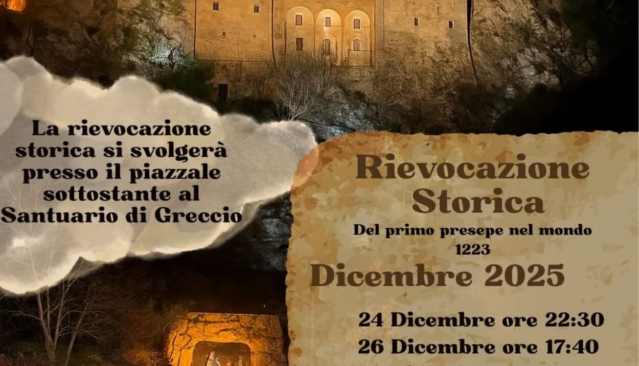 Oggi, a oltre otto secoli dopo, quel miracolo rivive con lo stesso spirito. Il Presepe Vivente di Greccio tornerà ad animare il territorio nelle serate del 24 dicembre (alle 22.40) e poi il 26, 27 e 28 dicembre 2025, oltre che il 1°, 3, 4 e 6 gennaio 2026 (tutte alle 17.40).