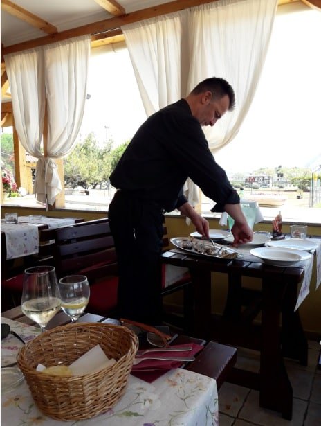 Lasciarsi consigliare dal cameriere per il vino diventa naturale dopo averlo visto all’opera a spinare il pesce davanti ai clienti. Il locale è aperto da Pasqua ai primi di settembre.