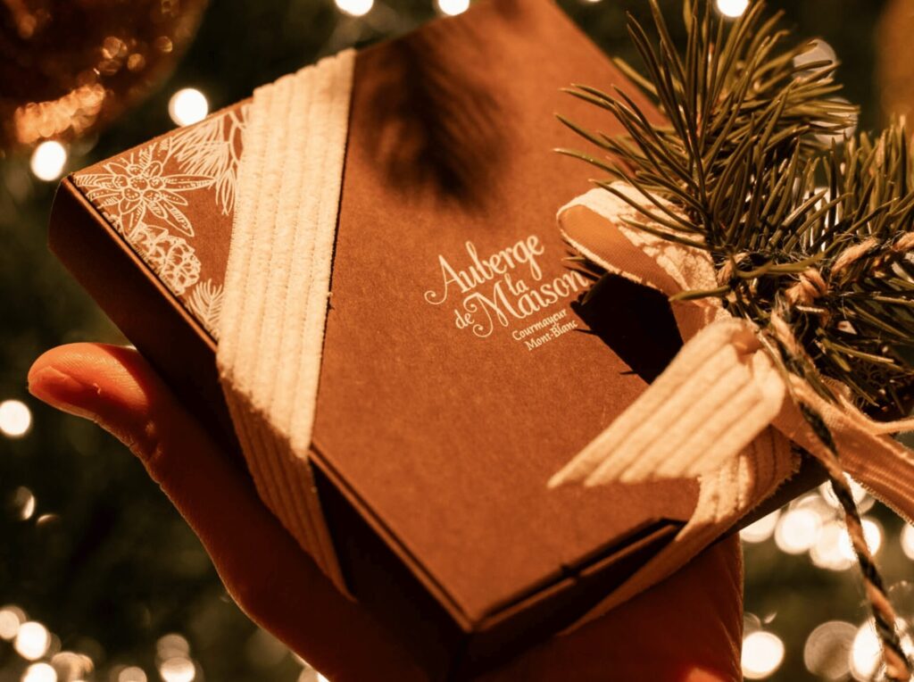 Protagonista indiscusso è il Panettone Marchesi 1824 in edizione speciale dedicata all’Auberge, presentato in un’elegante confezione esclusiva. A questo si affianca una gamma di specialità acquistabili presso la Maison des Souvenirs, la boutique dell’hotel: marron glacés, gelatine di frutta, assortimenti di biscotti e le celebri latte di frutta candita, ideali come regalo o ricordo del soggiorno.