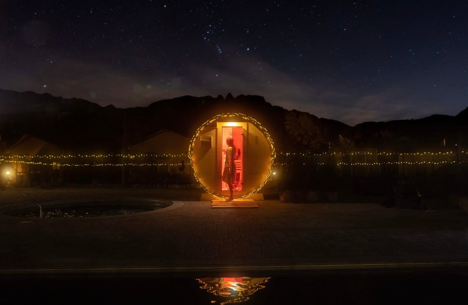Il cuore pulsante del Winter Glamping è la zona wellness all’aperto, dove sauna finlandese, hot tub e vasca idromassaggio si integrano nel paesaggio invernale creando un suggestivo contrasto tra il calore dell’acqua e la freschezza dell’aria di montagna.
