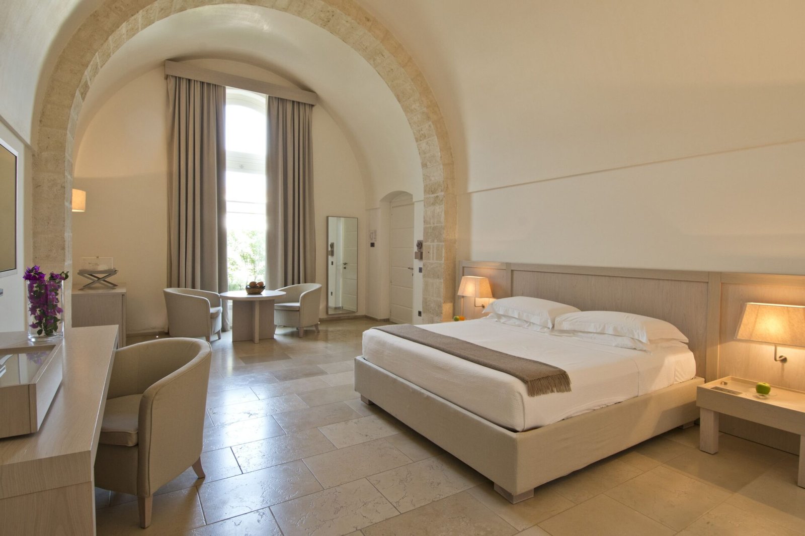 Le camere e suite del Relais Histó , Camere Suite Hotel 5 Stelle Taranto Puglia | Relais Histò , combinano fascino mediterraneo e comfort moderno. Con affacci su uliveti secolari e cortili interni, sono pensate per chi cerca una fuga romantica, un weekend gourmet o un soggiorno all’insegna del relax e del benessere. Gli arredi raffinati e i tessuti caldi richiamano la tradizione pugliese, mentre la disposizione degli spazi assicura privacy e tranquillità. Ogni soggiorno diventa un’esperienza sensoriale immersa nella storia, nella natura e nel fascino del Mediterraneo.